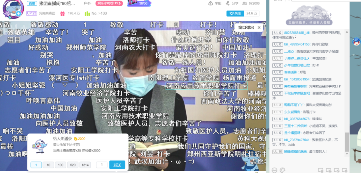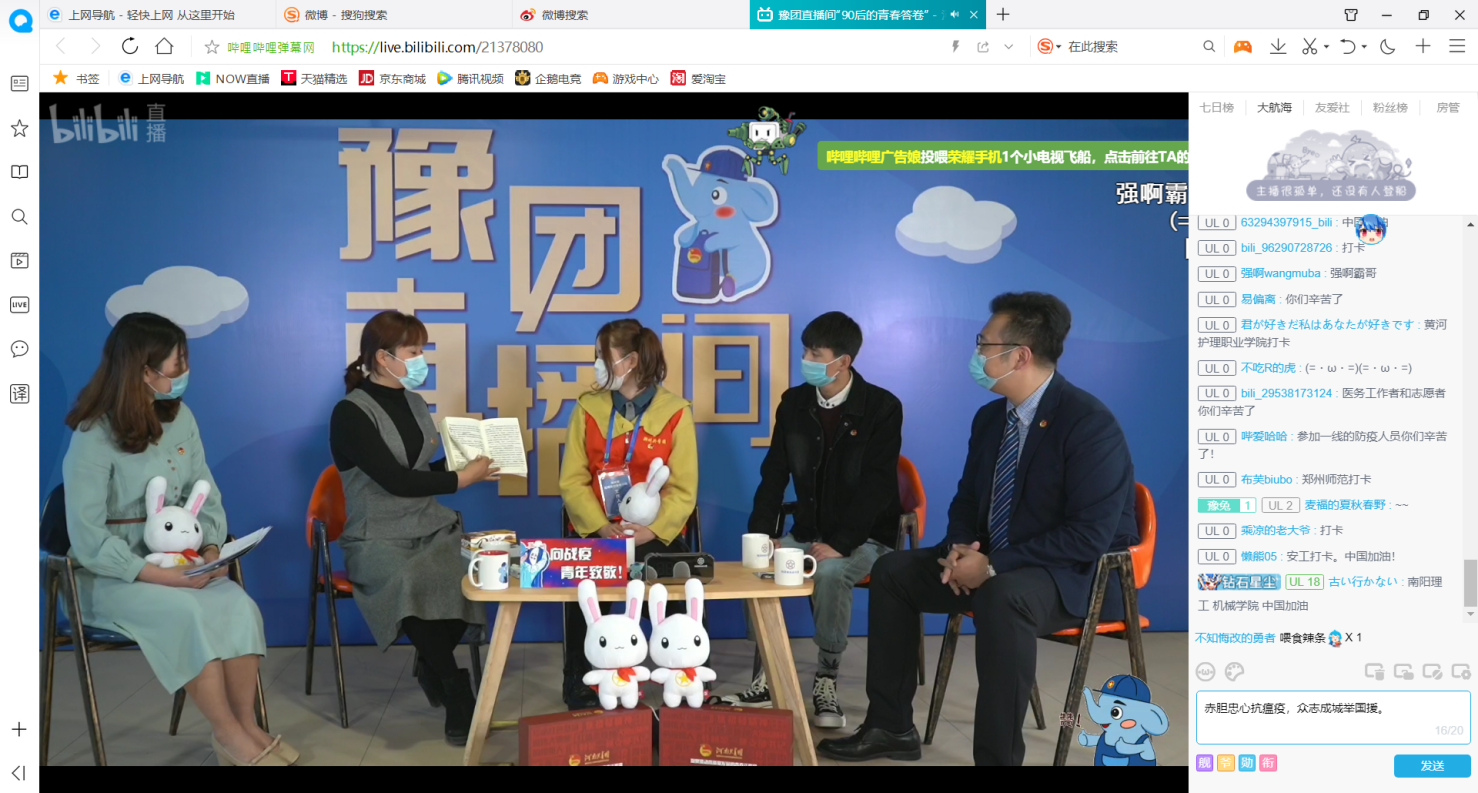 在本次“豫团直播间——90后的青春答卷”网络直播学习中,同学们更深刻地理解了习近平总书记“在为人民服务中茁壮成长、在艰苦奋斗中砥砺意志品质、在实践中增长工作本领”的含义,并且被奋战在抗疫一线的90后英雄们所感动,立志要学习英雄们在国家危难之际不畏艰险、挺身而出、果敢担当的精神,要坚守信仰,不忘初心,面对困难勇挑重担,将青春书写在党和人民最需要的地方。