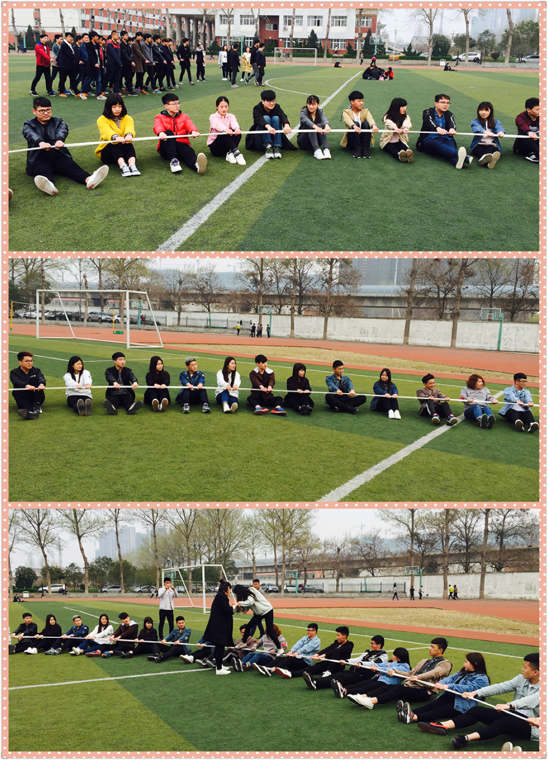 为增强班集体凝聚力,锻炼同学们超越自我的意识,提高同学们素质全面发展,2017年3月21日,建筑工程院举办的“大学生拓展训练”活动正式在操场举行,同学们积极的参加了此次活动。