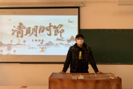为进一步加强同学们的思想道德建设,引导学生积极参与爱国主义教育活动,继承革命英烈优秀品质。beat365英国官网网站组织33个班级开展“我们的节日·清明节”主题班会,辅导员向同学们介绍清明节的相关历史以及传统习俗,着重对清明节的传统习俗——祭扫向同学们做了详细介绍,并强调心祭重于形祭,我们要倡导文明祭祀、摒弃旧习,文明祭奠,通过文明方式表达对先人的缅怀之情、感恩之意,让同学们对中国传统节日有初步了解认识。