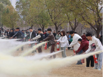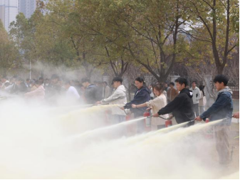 演练前,韩正好为在场师生讲解消防栓如何正确打开,灭火器的使用方法和技巧,并演示逃生技巧及如何正确、迅速地扑灭火源。同学们专心聆听关于火灾预防以及应对措施的讲解,积极学习消防知识。部分同学主动参与灭火操作,结合学习的消防知识,迅速对初期火灾作出反应,拿着灭火器准确扑灭初期火源,达到既定的演习效果,提高应对火灾事故的效率和能力。