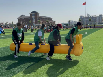 团队运动主要考究的是队员的配合性和协调性,步调一致才能走得快,通过这样的趣味运动赛能提高组员的身体素质,让他们在运动中找到快乐,比赛中除了欢乐还是欢乐。