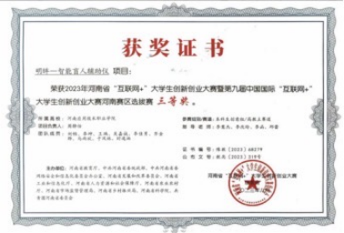 2024年09月第九届“互联网+”大学生创新创业大赛河南赛区选拔赛三等奖