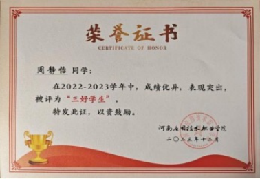 2024年05月,获得河南省三好学生