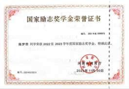 在学习方面,该学生刻苦努力,保持不骄不躁的心态,扎实学习专业知识,专业成绩始终名列前茅。同时依靠优异的成绩获得了2022-2023年国家励志奖学金以及三好学生等荣誉称号。