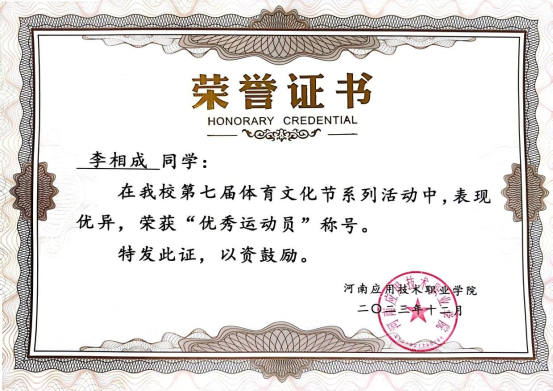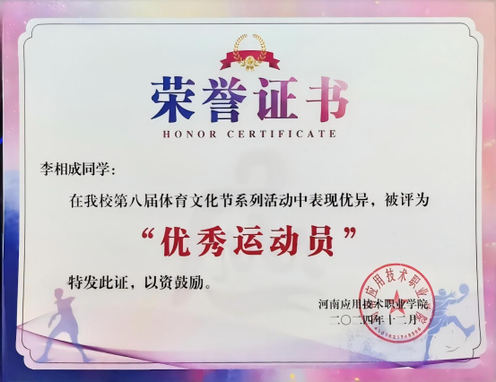 在担任班长期间,李相成展现了他细致入微、体贴关怀的一面。他始终将同学们的冷暖放在心上:有同学生病,他主动帮忙整理笔记、送饭送药;有同学因学业压力情绪低落,他耐心开导,分享经验;天气变化,他及时提醒大家增减衣物;同学间出现矛盾,他第一时间介入调解,化解隔阂。这些看似平凡的小事,却如春雨般滋润着班集体。他温暖的举动,让班级充满家的温度,也成了同学们最信赖的贴心人。在他的带领下,造价2301班于2024年12月荣获校级“先进班集体”称号,2025年荣获省级“先进班集体”称号。