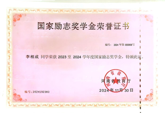 2023年,李相成光荣退伍,重回校园,成为beat365英国官网网站造价2301班的班长。他迅速调整状态,将部队里的自律与坚韧融入学习生活。面对复杂的课程知识,他制定了详细的学习计划。课堂上,他总是坐在前排,认真听讲,积极互动;课后,图书馆里,总能看到他伏案钻研的身影。凭借着在部队养成的自律和刻苦精神,他的专业成绩在班级中名列前茅。2024年,他凭借优异的成绩与突出的综合素质,荣获“国家励志奖学金”,用行动诠释了退伍不褪色的奋斗精神。