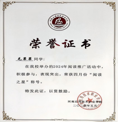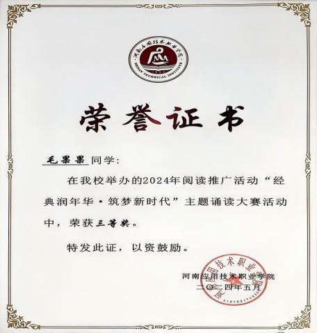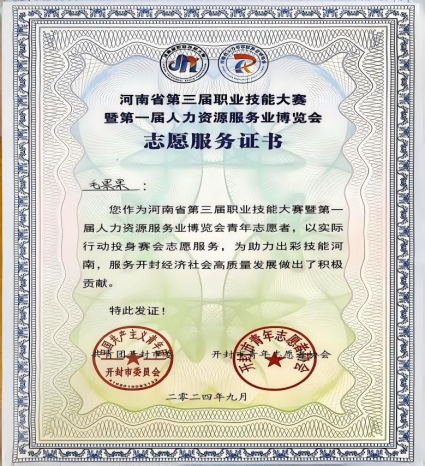生活中的她,始终保持着热心公益的初心。她积极参与各类志愿服务活动,无论是校园内的劳动实践,还是校外的公益服务,都能看到她忙碌的身影:专升本志愿服务活动、迎新志愿活动、无偿献血、春季运动会志愿服务活动、图书馆志愿服务活动、郑开马拉松志愿服务活动、单招志愿服务活动、河南省第三届职业技能大赛开幕式志愿活动等等40余项。她认为,志愿服务不仅是帮助他人,更是自我成长的过程——在奉献中,她增强了社会责任感;在实践中,她学会了换位思考。这份对公益的热忱,让她成为同学们眼中的“暖心人”,也让青春在服务社会中焕发出更加动人的光彩。
