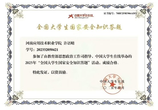 在专业实践方面,她积极参与大学生创新创业大赛以及学校举行的绘画创意比赛,将理论知识应用于解决实际问题,荣获发明杯大赛三等奖、创新创业大赛二、三等奖等。这些经历极大地提升了她的创新思维、动手能力和专业综合素养。在志愿服务方面,作为预备党员,投身河南省职业技能大赛、绿色环保、专升本等志愿服务,荣获河南省第三届职业技能大赛志愿服务证书,累计时长300多小时。她认为,志愿服务是青年回馈社会、实现价值的重要途径,每一次付出都让她感受到奉献的快乐。