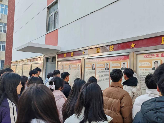 同学们通过宣传展板深入了解和学习国家奖学金获得者的先进事迹,深刻感悟到国奖获得者在学习生活、比赛竞赛、社会实践、志愿服务中的心路历程和顽强拼搏,矢志追梦的先进事迹,为全校学生树立了标杆和榜样。同学们从他们身上感受到了“积极向上”的正能量,这是一堂鲜活生动的思政大课。