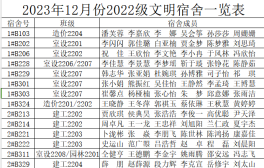 2023年12月份2022级文明宿舍一览表: