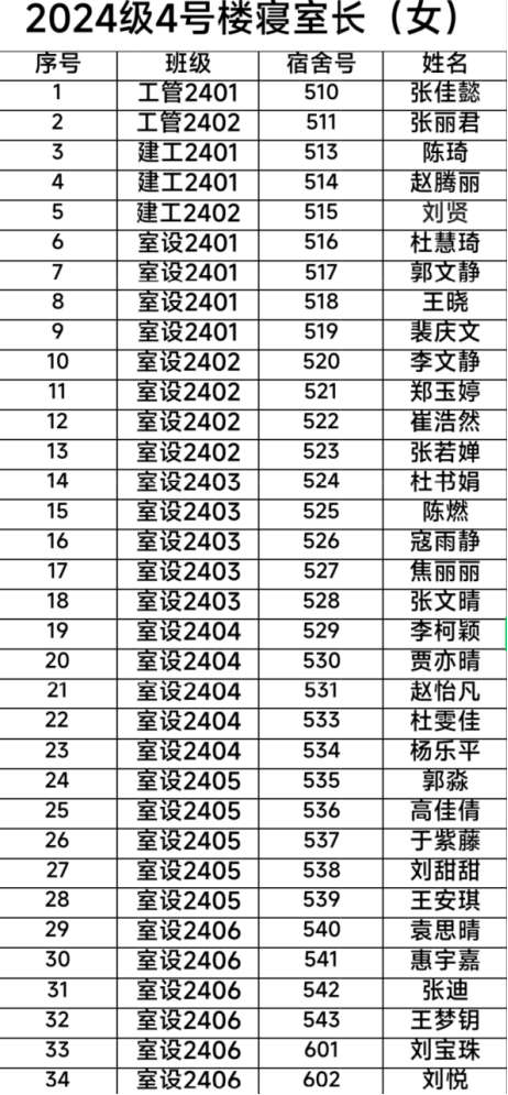 家人们谁懂啊!beat365英国官网网站4号楼即将迎来一批超给力的“寝室操盘手”!为了让咱们的宿舍从“舒适大本营”变身“文明样板间”,学院最近搞了一场超严格的宿舍长“选秀大赛”!经过层层PK,2024-2025学年第二学期的寝室长天团终于成团出道,名单新鲜出炉,速来围观!