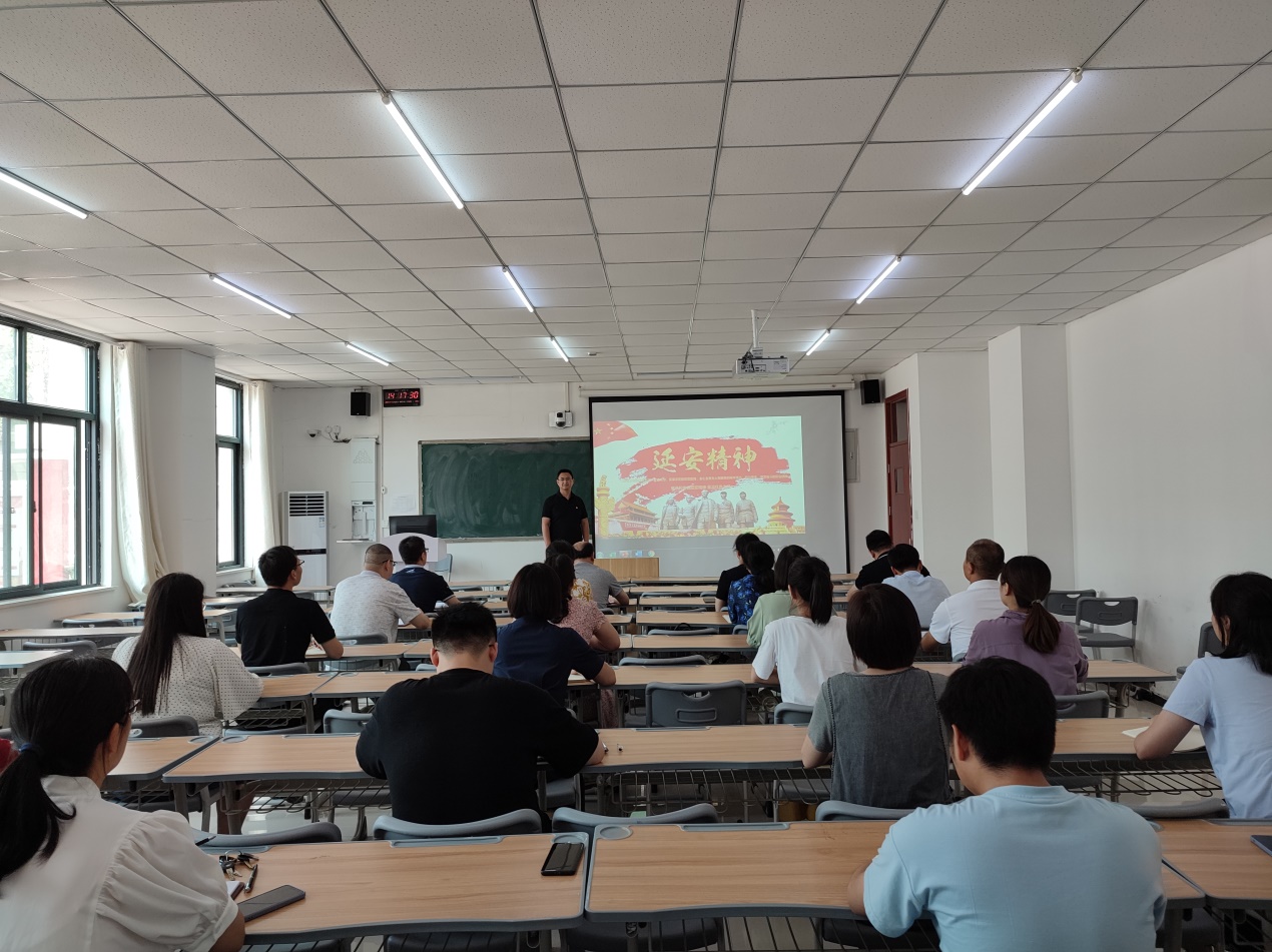 本次党课,樊磊老师以《延安精神》为题,围绕正确理解延安精神的实质和深刻内涵进行阐述,对如何践行“不忘初心、牢记使命”,严肃政治纪律,强化政治规矩进行讲解。延安精神是红色革命精神之一,是中国共产党创造的一种革命精神。因在革命圣地延安诞生,故名延安精神,主要内容包括:实事求是、理论联系实际的精神,全心全意为人民服务的精神和自力更生艰苦奋斗的精神。张瑾老师以《入党初心》为题,结合自己的工作实际,对共产党员如何立足岗位讲奉献进行了讲解。