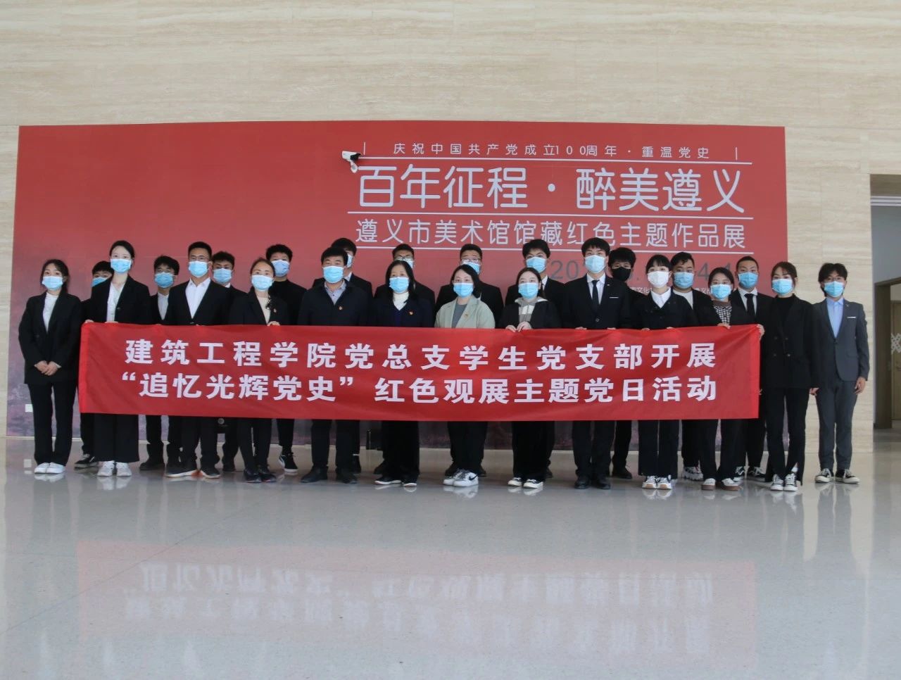 为庆祝中国共产党中国共产党成立一百周年,回顾党的奋斗历史,讴歌党的光辉事迹,2021年3月24日,beat365英国官网网站党总支学生党支部党员代表和20名入党积极分子前往郑州市美术馆,开展了“追忆光辉党史 感受红色文化”主题党日活动。