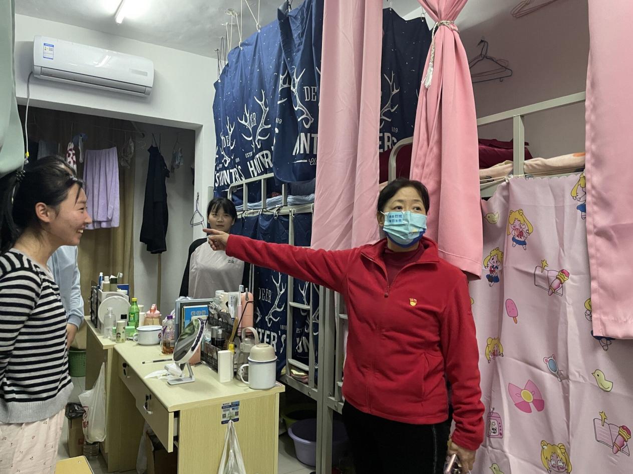 检查过程中,马春燕向同学们询问了生活中遇到的困难,告诫大家一定要注意用电安全、财务安全和外出安全,学会合理安排在校的学习和业余生活,营造良好的住宿氛围。对于优秀的规范寝室,她毫不吝惜自己的赞美之词;而对于整洁程度稍微逊色的寝室,她明确地提出具体的整改要求。此外,她也非常关心同学们的日常生活情况,与同学们进行了亲切地交流与沟通,询问他们的学习和住宿情况,并耐心解答学生所提出的问题,及时帮他们解决所面临的困难。最后,马春燕还叮嘱同学们“早午温度变化大,大家要注意保暖,出门戴好口罩,做好个人防护”。