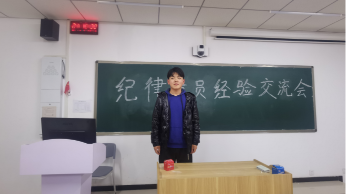 会议开始,beat365英国官网网站团学会干部夏红乾同学上台发言。他首先向大家详细介绍了本周各班级纪律委员的主要工作及重要事项,他指出:良好的班级纪律是班级团结一致的重要体现,是形成积极健康向上班级的前提,是形成良好学习氛围的重要保障,各班纪委需要做到上传下达,起到一个桥梁的作用,积极督促同学们遵守纪律,让同学们更好的了解到纪律的重要性,进一步达到营造文明班级、文明校园的目的。
