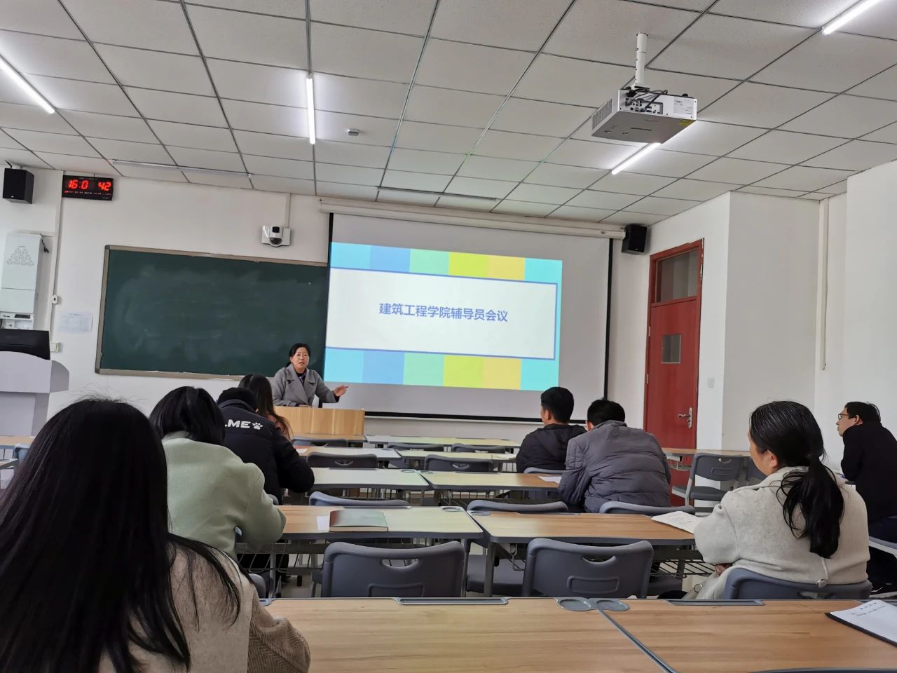 接着,马书记对学生日常管理工作向大家进行了强调,包括钉钉打卡、宿舍安全、双创竞赛、18级毕业环节注意事项,以及各班级家庭收入低、学业困难学生数据库建立等问题。在建党100周年庆祝活动为契机,马书记要求辅导员要扎实开展学生党史学习、社会实践、志愿服务等丰富多彩的班级活动,引导学生自觉培养家国情怀,促进学生身心全面发展,增强班级凝聚力,展现建工学子团结一心,勇往直前的精神面貌。
