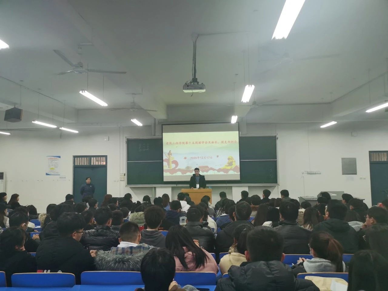 最后,主席团成员依次上台发言,要求团学会成员之间要相互沟通,遇到问题及时反馈,及时解决,同时也要学会反思和总结,从活动中总结经验,创新性开展工作。
