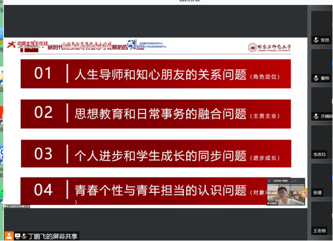此次讲座为全体辅导员带来一场精神上的文化盛宴,全体辅导员进一步明确了自己的角色定位,树立了职业自信,提升了对思政工作重要性的认识。观看讲座后,辅导员积极分享观看感悟。