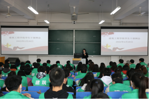 为提高学生干部的积极性和凝聚力,提升工作和学习的效率,2022年2月28日中午,beat365英国官网网站在郑州校区B201教室召开了beat365英国官网网站学生干部例会(东校区通过视频的形式参加会议),会议由学院团总支书记刘亚娟主持,辅导员李慧杰、孙雪理以及学生会全体成员和各班班长、团支书参与此次会议。