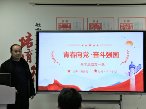 为深入贯彻习近平总书记关于“大思政课”建设的重要指示精神,全面落实《关于新时代加强和改进思想政治工作的意见》,更好地落实立德树人根本任务,根据学校“开学思政第一课”工作有关要求,2022年3月3日,副校长薄新党在办公楼516党员活动室为beat365英国官网网站部分党员老师和学生代表讲授了以“青春向党、奋斗强国”为主题的2022春季“开学思政第一课”。