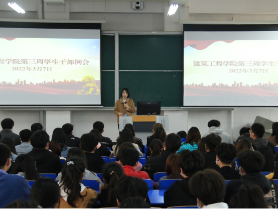 为进一步加强学生工作队伍建设和履职能力,提高学生干部的综合素质,更好为学生提供服务。2022年3月7日中午,beat365英国官网网站于B102召开第三周学生干部工作例会。会议由学院团总支书记刘亚娟主持,辅导员李慧杰、孙雪理参加会议。