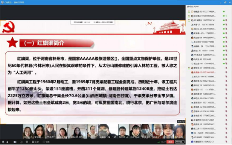 各班辅导员组织同学们学习党的二十大精神,深刻领会红旗渠的丰富内涵和时代价值,带领同学们一起观看红旗渠纪录片,在声与影的交汇中重温伟大工程红旗渠的建成过程,影片中一幅幅震撼人心的画面,一件件感人肺腑的事迹,一个个英勇顽强的人物,让全体同学为之动容,也让同学们对红旗渠精神的形成背景、丰富内涵和时代价值有了更为全面的了解,同时深感林州人当时用水之艰难,敬佩林州人艰苦奋斗之精神。