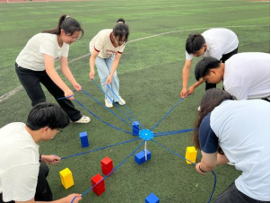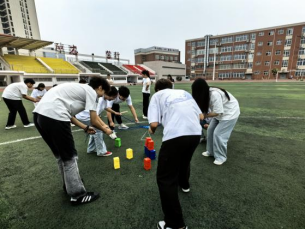 在整个游戏过程中,同学们既要保持平衡又要争分夺秒,过程紧张又刺激,极大提高了同学们的团队合作能力和心理抗压能力!