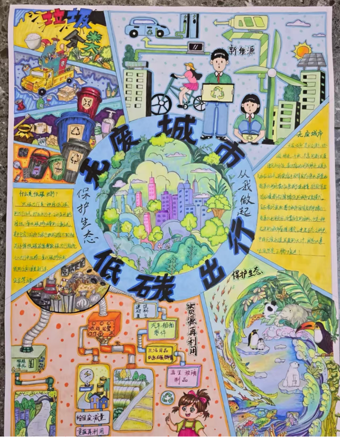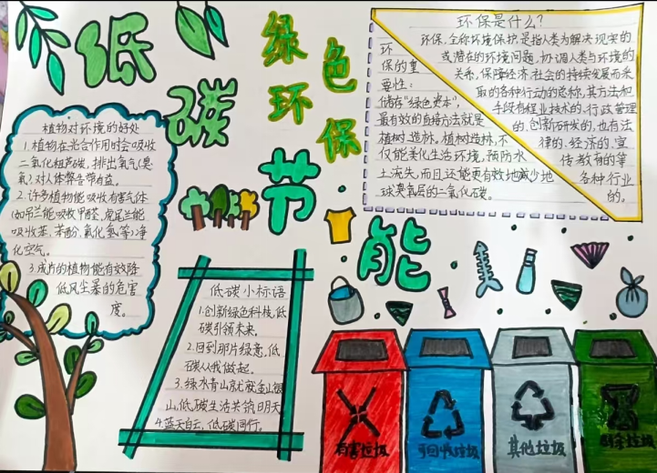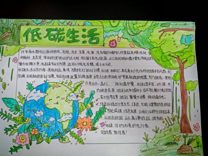 为深入贯彻绿色发展理念,增强学生的节能降耗意识,beat365英国官网网站发出“绿色节能,低碳先行”低碳生活倡议书。同学们积极响应倡议号召,将低碳节能理念融入一幅幅作品之中,让每一张手抄报都成为了传播绿色低碳的生动载体。