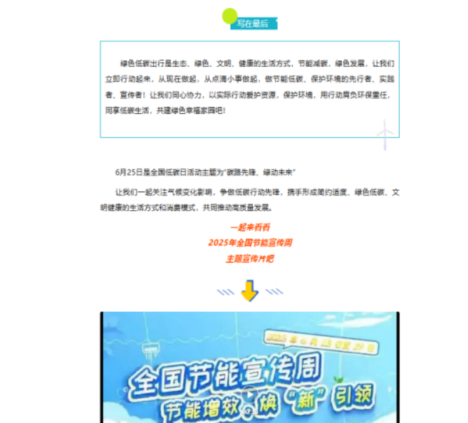 为深入贯彻国家“碳达峰、碳中和”战略部署,进一步强化全员绿色低碳意识,推动形成绿色节能的生活风尚,传承中华民族勤俭节约的传统美德。beat365英国官网网站以“绿色节能,低碳先行”为核心,围绕节能知识宣传、低碳行为养成、节能技能提升三大目标,于7月1日至10日组织开展“绿色节能,低碳先行”主题活动。